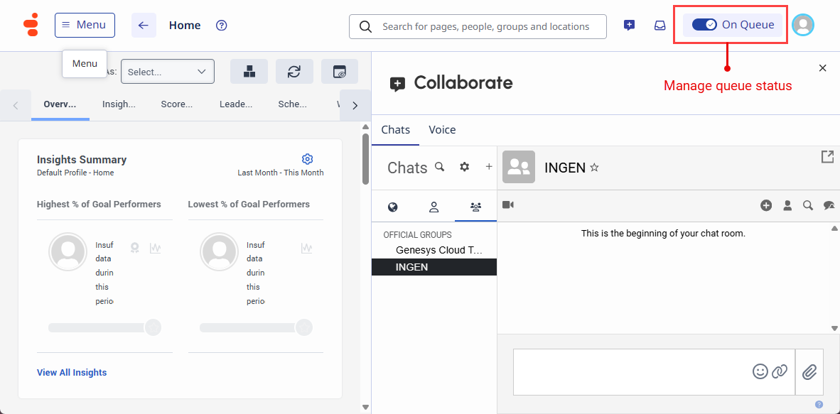 To allow users access to this feature, administrators must assign the following permission to a user’s role: UI > New Genesys UI Navigation > Enable. For more information, see Access control permissions overview.