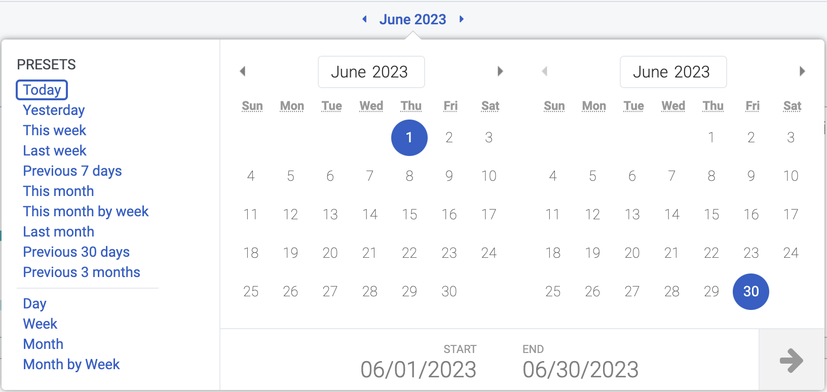 Use the date selector to filter for a time period in which you want to examine Genesys Agent Assist analytics.