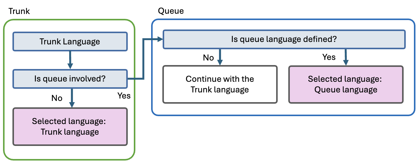 - Direct call without an IVR flow or queue – The language is set to the trunk language.